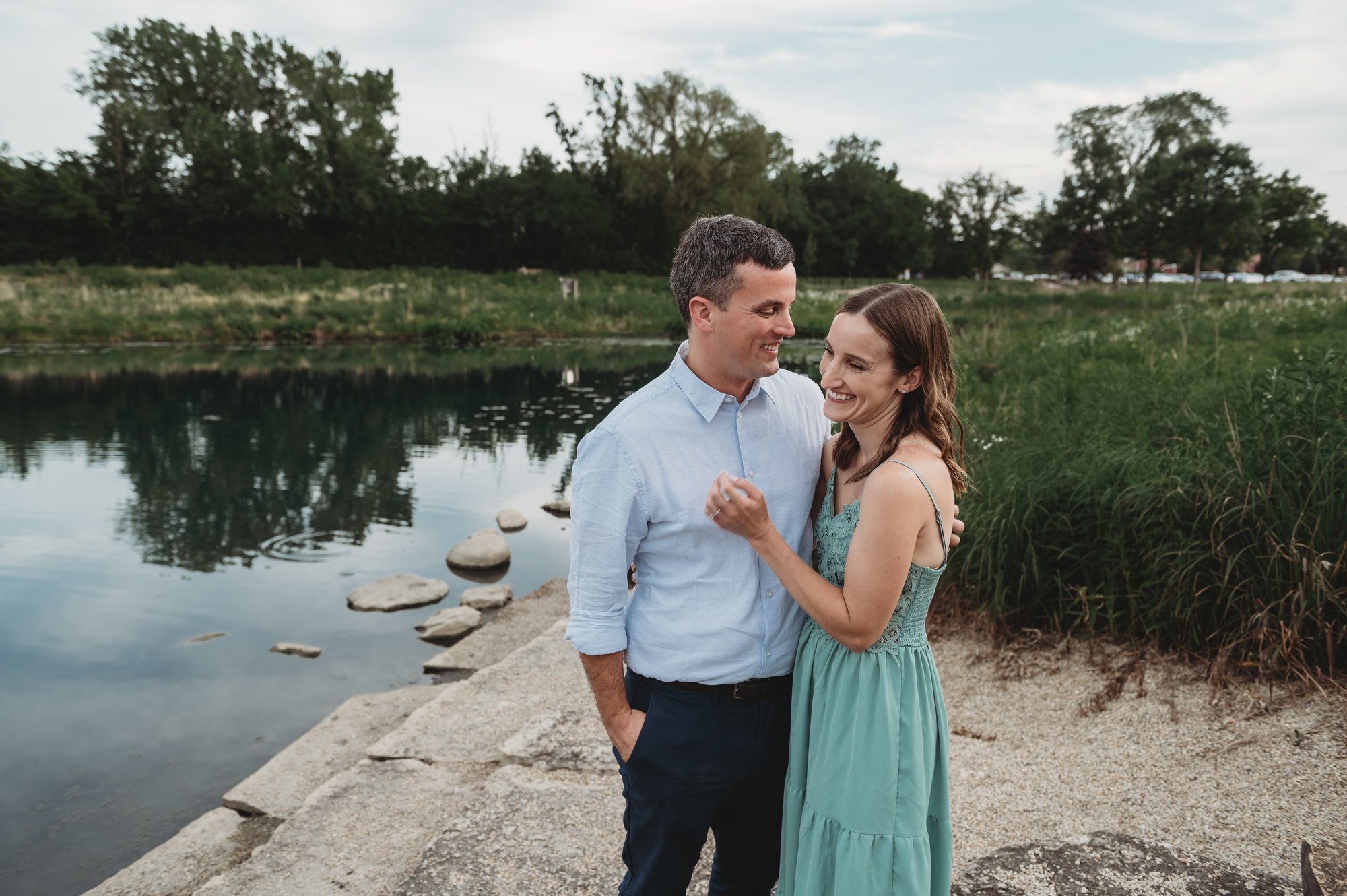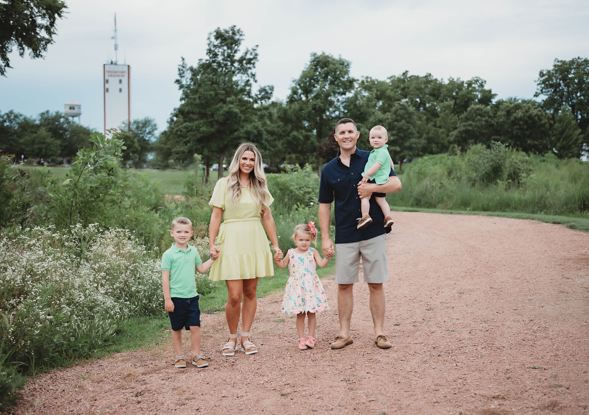 Nestled just beyond the heart of Frankfort, this scenic grassy area feels like a hidden gem designed for effortless, natural photography. It offers a peaceful blend of grassy areas, wildlife moments with pond views, rock stairs (great for seated poses and candid moments), and a pebble path with the iconic Frankfort Grainery building in the distance.
